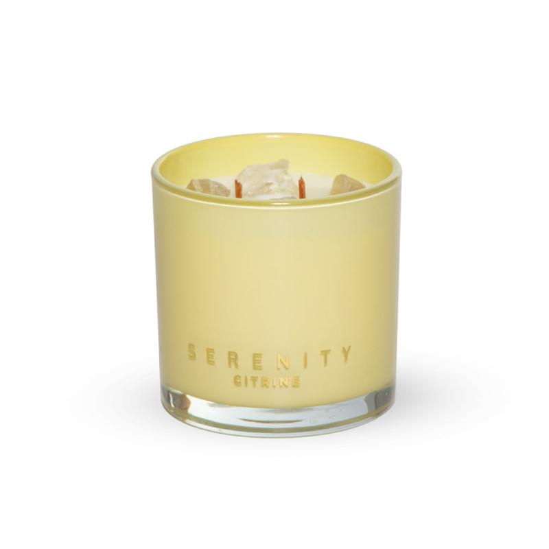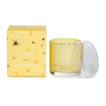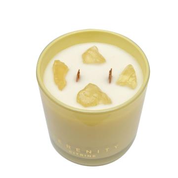 Свічка в скляному свічнику із кристалами Цитрина аромат Лемонграс 300г