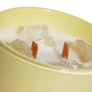 Опис Свічка у скляному свічнику з кристалами Цитрина аромат Medeterenian Lemon and Peach