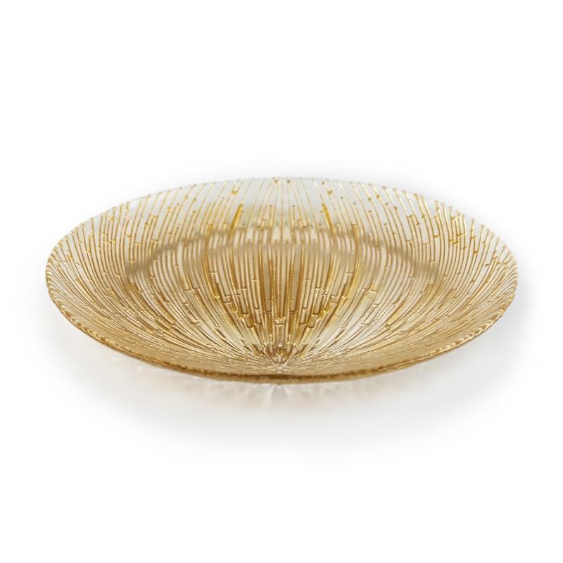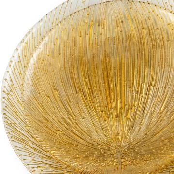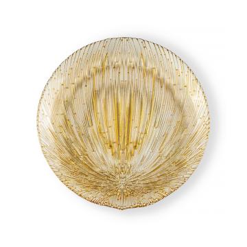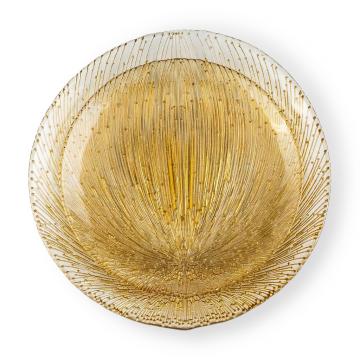 Скляна тарілка "Кульбаба" - сяйво природи у вашому сервіруванні. Тарілка "Кульбаба" - це втілення легкості і витонченості. Її прозоре скло з золотистим візерунком нагадує пушинки кульбаби, що розлетілися, створюючи неповторний ефект гри світла. Така страва стане вишуканим акцентом на вашому столі, додаючи теплоту та елегантність у сервірування.