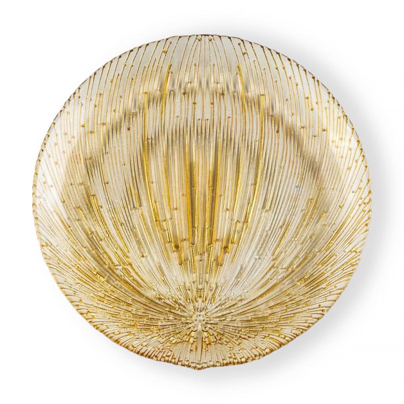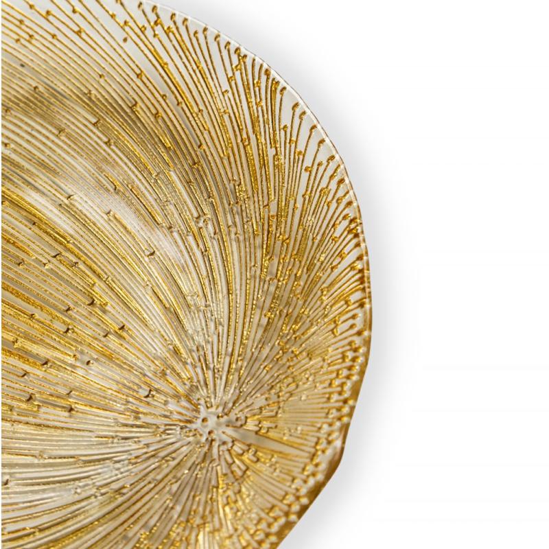 Скляна тарілка "Кульбаба" - сяйво природи у вашому сервіруванні. Тарілка "Кульбаба" - це втілення легкості і витонченості. Її прозоре скло з золотистим візерунком нагадує пушинки кульбаби, що розлетілися, створюючи неповторний ефект гри світла. Така страва стане вишуканим акцентом на вашому столі, додаючи теплоту та елегантність у сервірування.