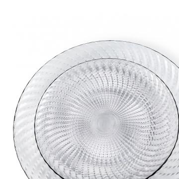 Скляна тарілка "Орбіта" – стильна геометрія у вашому сервіруванні. Тарілка "Орбіта" поєднує в собі лаконічність та вишуканість. Її прозоре скло з динамічним рельєфним візерунком створює ефект руху, а тонкий чорний кант додає елегантності та виразності. Такий дизайн робить тарілку універсальною – вона гармонійно впишеться в сучасне та класичне сервірування.