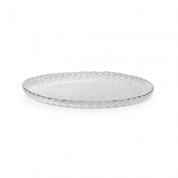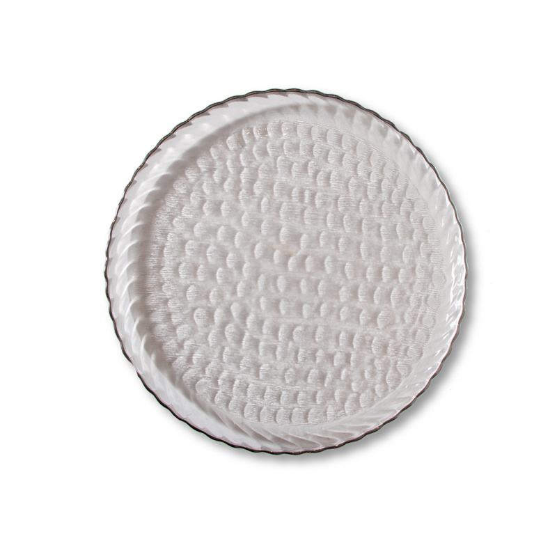 Опис Тарілка скляна з срібним обідком Косичка 21*21 см