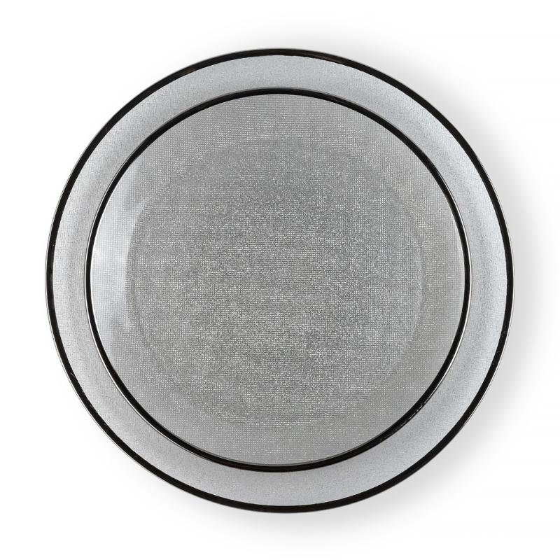Скляна тарілка "Silver Starlight" - сяйво елегантності. Тарілка "Silver Starlight" - це втілення витонченого стилю та сучасного мінімалізму. Її скло з мерехтливим сріблястим покриттям нагадує зоряне небо, створюючи ефект розкоші та легкості. Тонкий темний кант додає елегантного контрасту, роблячи цю тарілку ідеальним акцентом як для святкового, так і для повсякденного сервірування.