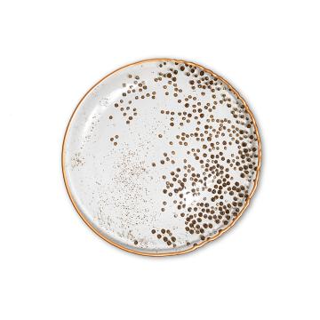 Скляна тарілка Giove – вірний спосіб здивувати гостей сервіруванням столу. Золоті візерунки, розкидані на поверхні посуду, створюють елемент несподіванки та інтриги. Поєднання прозорого та золотого викликає відчуття елегантності.