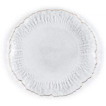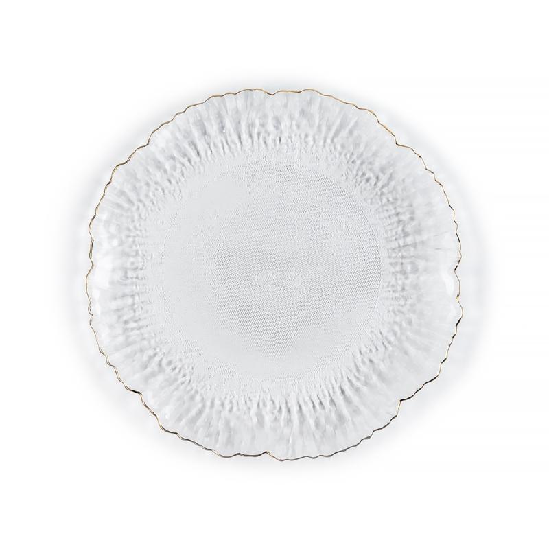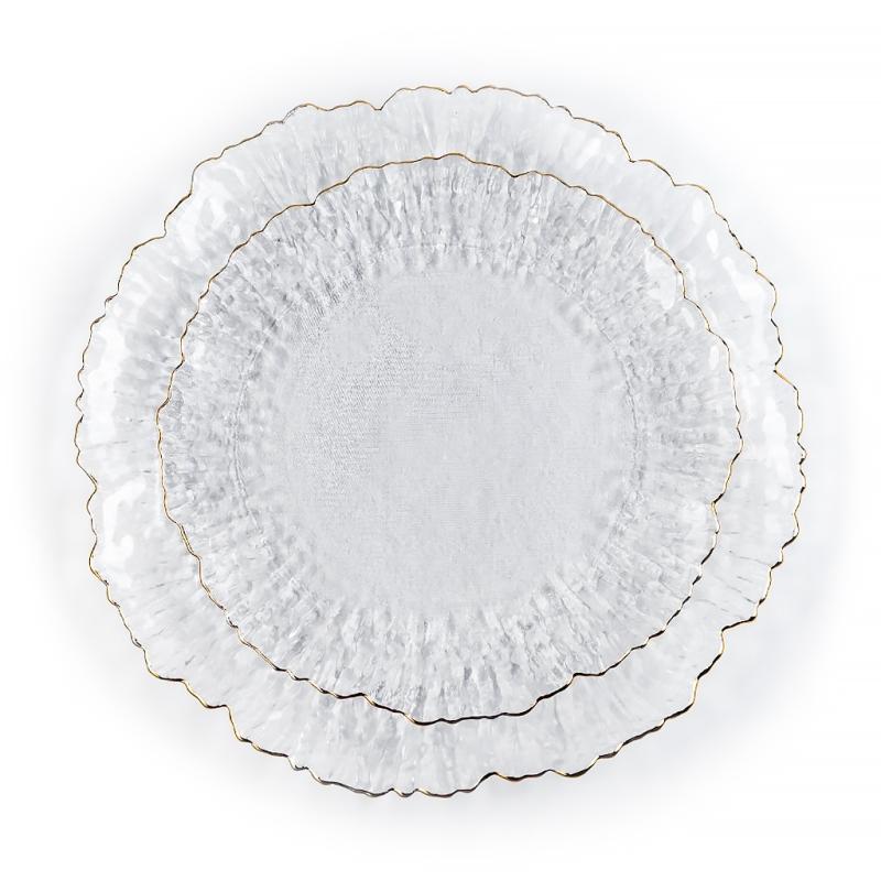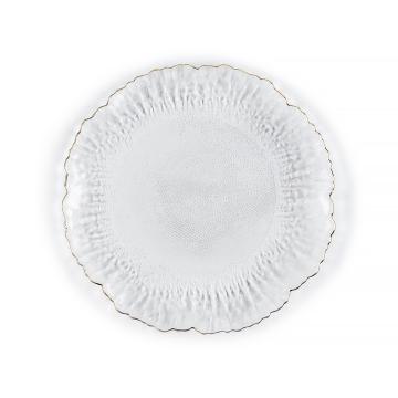 Скляна тарілка «Квітка» – ніжність та елегантність у кожному сервіруванні. Тарілка "Квітка" - це витончена краса і повітряна легкість, натхненна природою. Прозоре рельєфне скло та незвичайна хвиляста форма нагадують пелюстки квітки, створюючи відчуття гармонії та затишку. Золотиста окантовка додає виробу благородного штриху, роблячи його ідеальним вибором для святкового столу та стильних заходів.