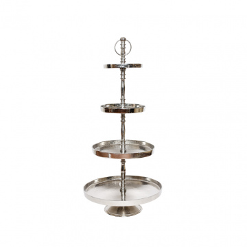 Фінал будь-якого торжества не обходиться без подачі десертних страв. Алюмінієва тортівниця на чотири яруси - незамінна посуд для ефектної викладення будь-яких продуктів.