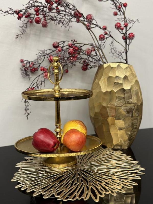 Опис Тортовниця алюміній 2 яруса овал золото 40х27х17см