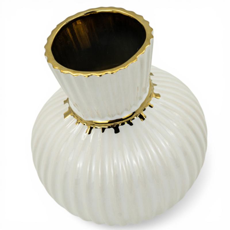 Опис Ваза керамічна Liora біла із золотом 18см