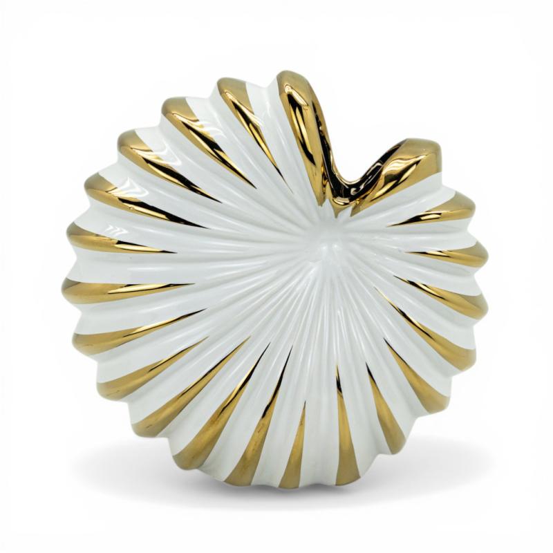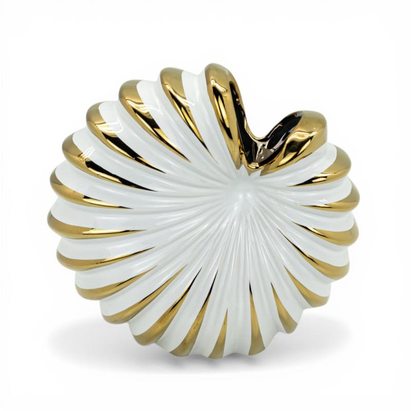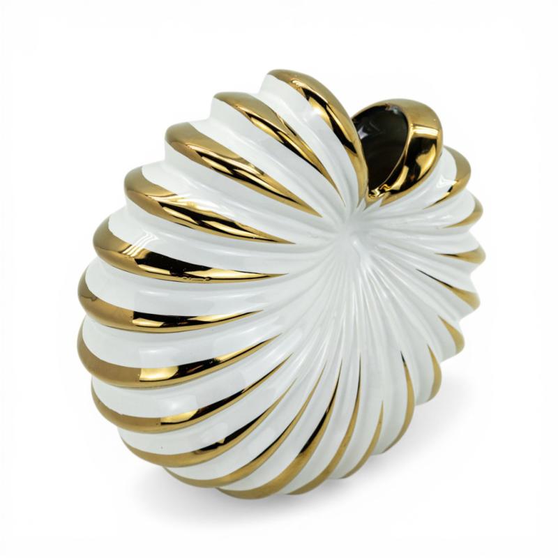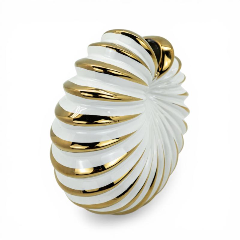 Незвичайна форма вази "Наутілус" відразу робить її помітною деталлю інтер'єру. Плавні лінії, об'ємний рельєф та поєднання білої кераміки із золотими акцентами надають керамічній вазі виразного та сучасного вигляду. Такий декор красиво виглядає у просторі, додаючи йому глибину, стиль та відчуття продуманого оформлення.
