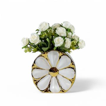 Ваза керамічна Ромашка біла із золотом 20,8 см