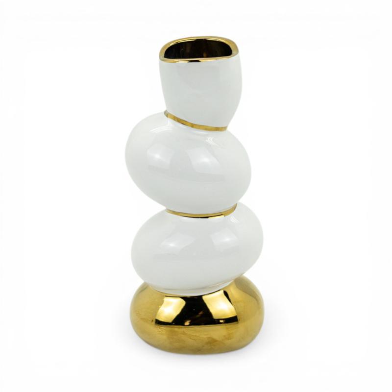 Опис Ваза керамічна Stones біла із золотом 24,5см