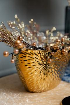 Керамічна тура «Imperial Gold» - це втілення розкоші та елегантності, створене для справжніх поціновувачів вишуканого декору. Її витончена форма човна і сяюча золота поверхня з фактурним візерунком нагадують витвір мистецтва, здатний стати центральним акцентом інтер'єру. Така тура створює атмосферу урочистості та гармонії, наповнюючи простір блиском та теплом. Характеристики • Розмір: 15х17х31 см • Матеріал: кераміка • Колір: золото Варіанти використання • Як самостійний арт-об'єкт на столі чи комоді • Для декоративних композицій із сухоцвітів, фруктів, цукерок або текстильних елементів • Як ефектний подарунок для поціновувачів стильних інтер'єрних деталей Подаруйте інтер'єру підкреслить витончений смак і додасть будинку атмосферу величі.