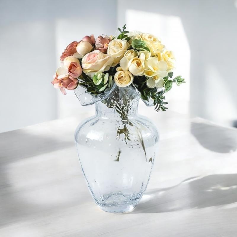 Кількість: Ваза скляна Жабо Luminescent – магія світіння у вашому інтер'єрі. Ця незвичайна прозора скляна ваза із витонченою формою стане яскравим та чарівним доповненням вашого будинку. Її головна особливість – люмінесцентні точки, що ніжно світяться у темряві, створюючи чарівну атмосферу та привертаючи увагу.
