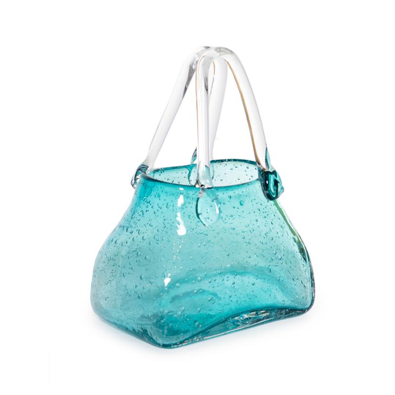 Скляна ваза «Сумка» – стильна деталь інтер'єру. Ця незвичайна скляна ваза у формі сумочки насиченого бірюзового відтінку – елегантне рішення для тих, хто цінує оригінальність та креатив у кожній деталі. Її унікальний дизайн та фактурна поверхня роблять вазу привабливим акцентом у будь-якому приміщенні.
