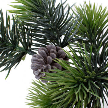 Зовнішній вигляд гілки відтворює тонкі нюанси живого дерева. Шишка в волохатих голках виглядають натурально під будь-яким кутом зору. Гнеться ніжка соснової гілки надасть послугу для оформлення новорічної ікебани, святкової вітрини, тематичної фото зони. & nbsp;невибаглива в побуті прикраса практично обіграє настрій Нового року в кожному куточку інтер'єру.